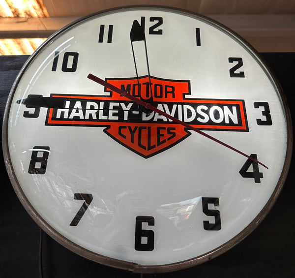 Featuring the iconic Harley-Davidson logo and design, this clock is perfect for display in a garage, man cave, or living space. Made by Harley-Davidson, a reputable American motorcycle brand, this clock embodies the spirit of adventure and quality craftsmanship that the brand is known for.