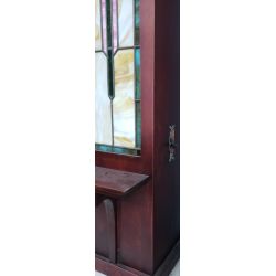 This antique Art Deco back bar was restored and includes updated wiring and lighting fixtures with shades, and brass hinges throughout.