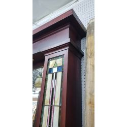 It is 8'L x 102"H x 16 1/2"D. It has right and left side stained glass panels, accent shelves, and a Carrara marble bar top.