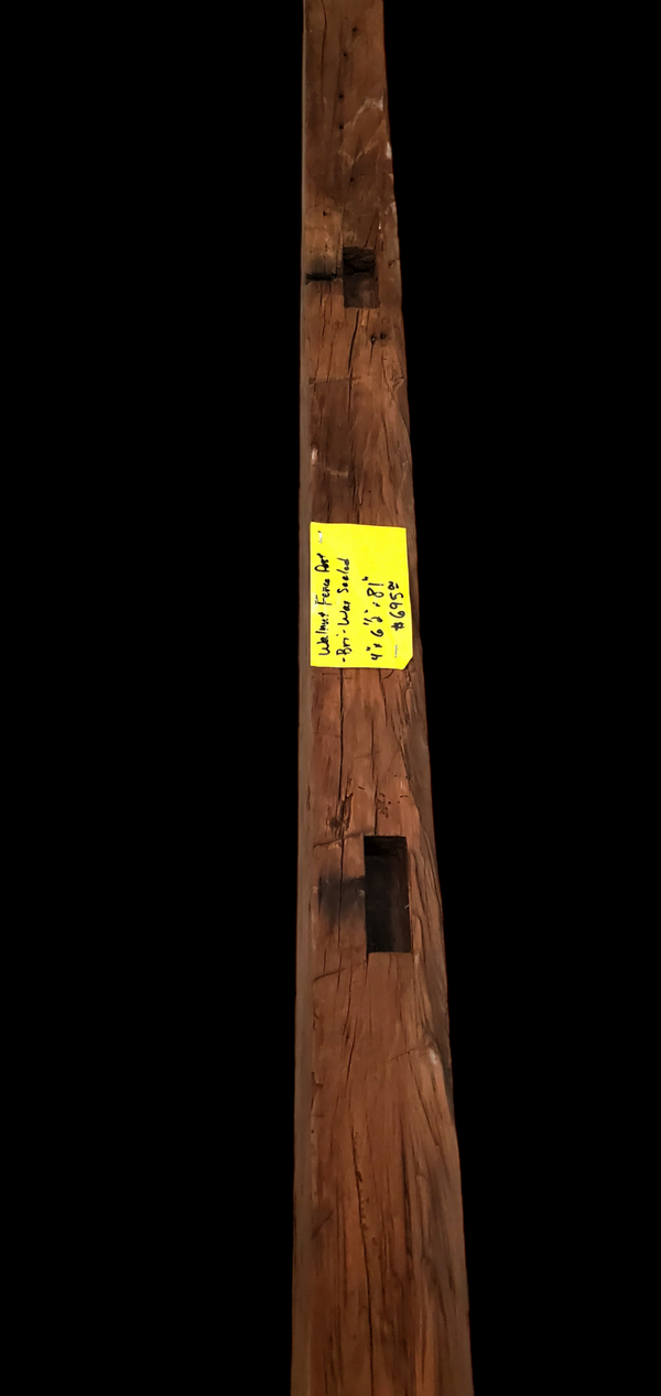 This is a great reclaimed walnut fence post beam. It's unique character will add charm to any space. It has been Bri-wax sealed.