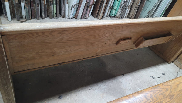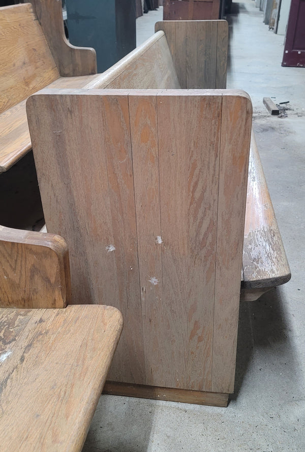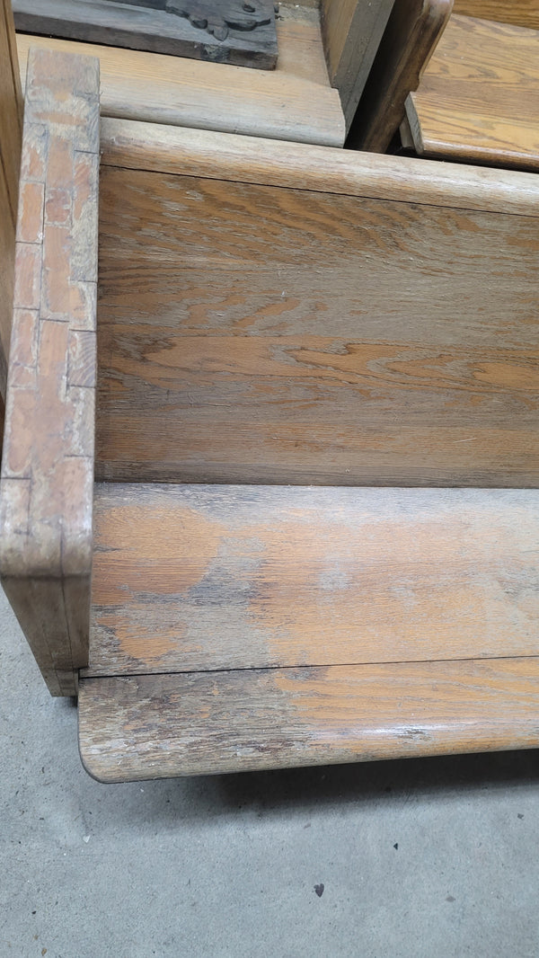 We've obtained a number of church pews from a local Richmond, VA church that were remodeling their building. This pew bench is made from oak wood. At the back of the bench you can see it's hymnal pocket which is intact.