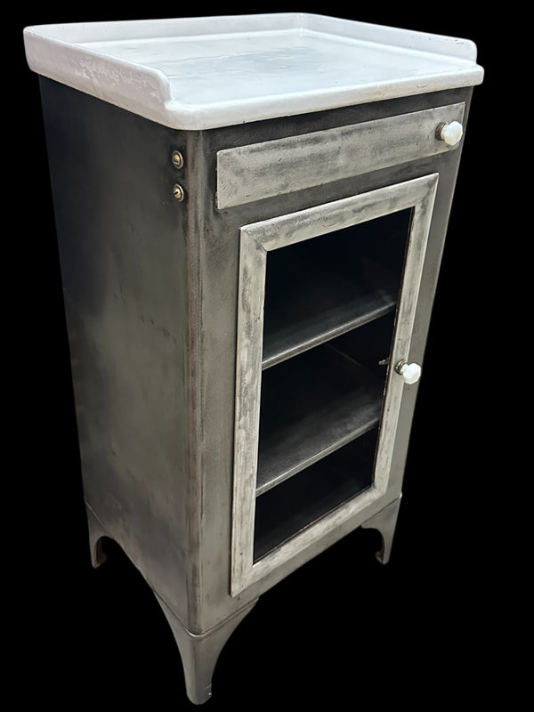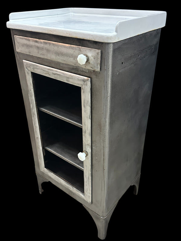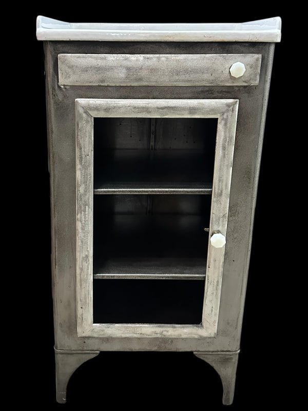 Antique Steel Medical Cabinet w/ White Ultralight Glass Top GA20377