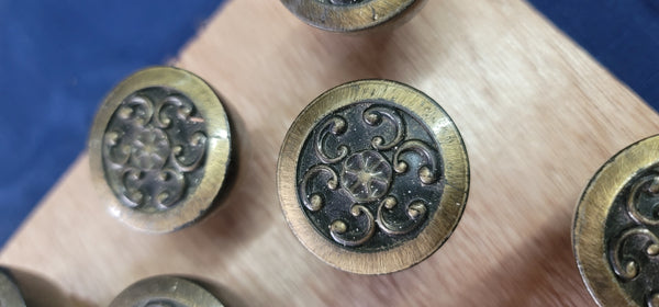These vintage cabinet/furniture knobs have a great Art Nouveau style. Made from brass they are all in great condition and come with installation screws which are shown.
