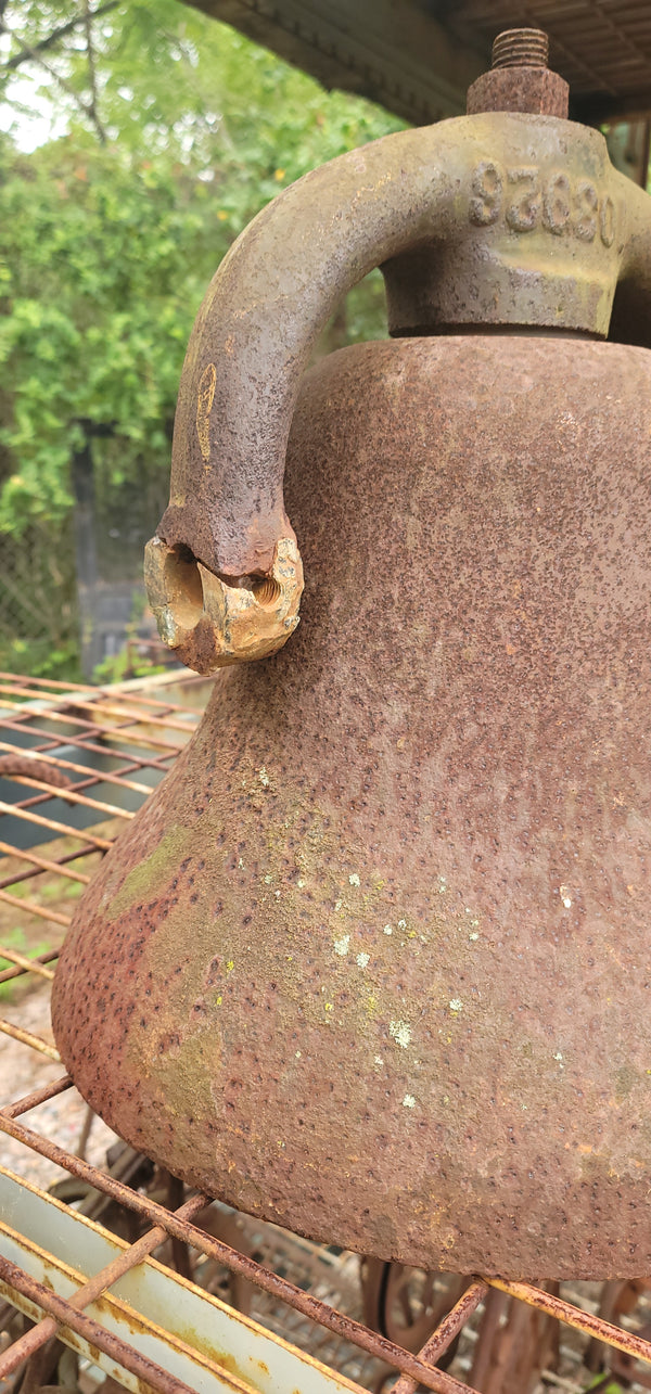 This bell shape is a little different than many fluted cast iron bells. It also seems to be thicker in iron overall and may have been used within a building or church.