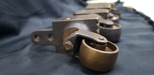 Fantastic set of Duncan Fyfe toe caps with caster wheels. They are very solid and heavy duty. The front has a textured ribbed pattern and the sides are smooth. Caster wheels swivel 360 degrees with ease.