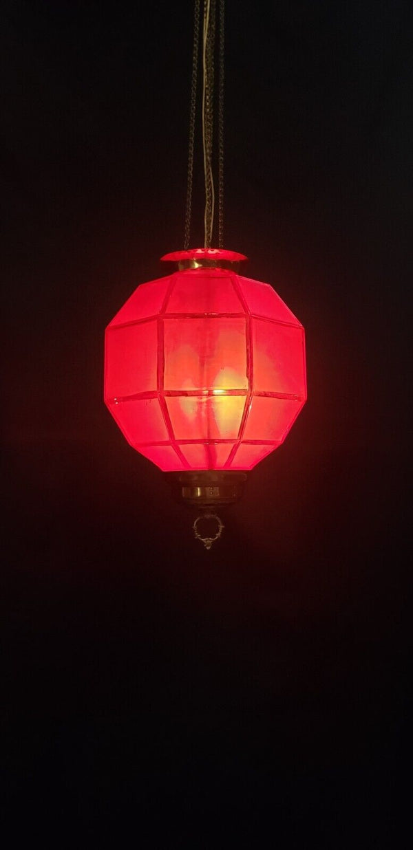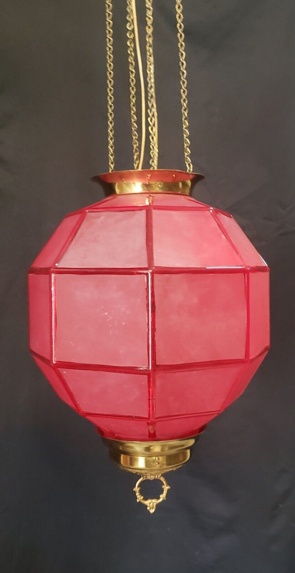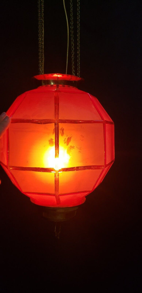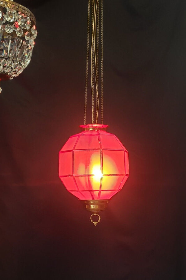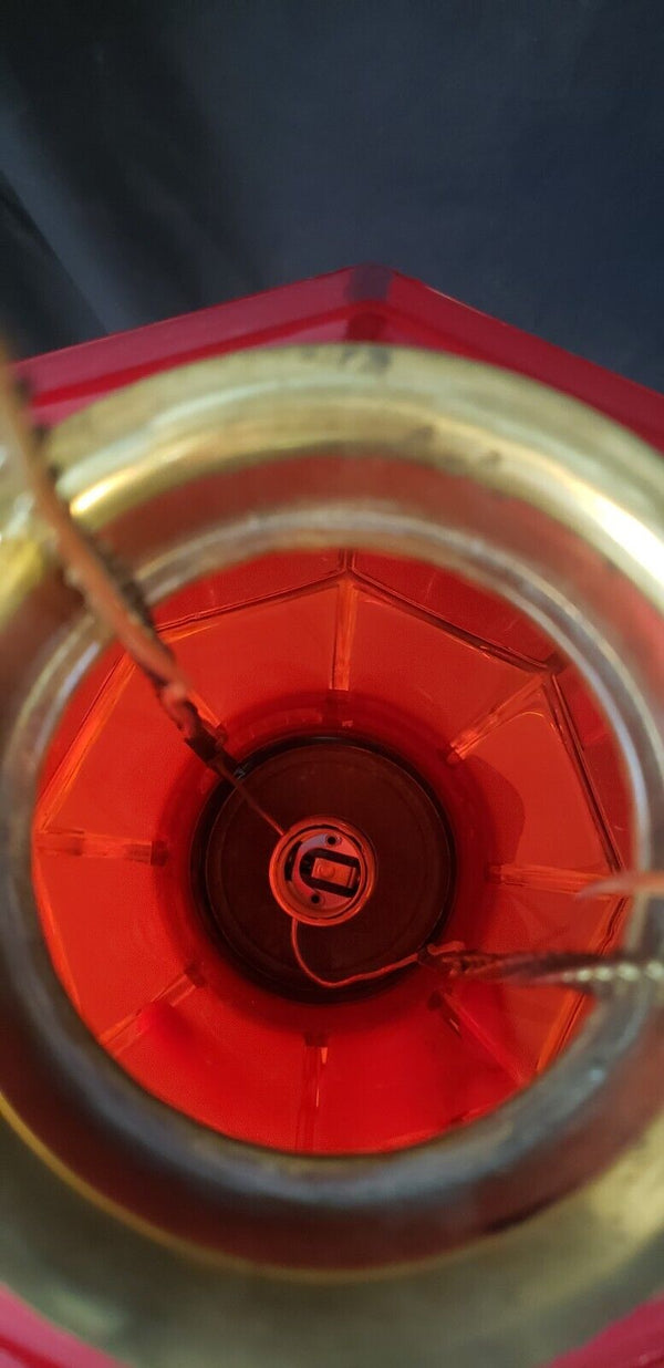 Red Frosted Octagon Hanging Oil Lamp Electrified with Brass Fitters GS00125