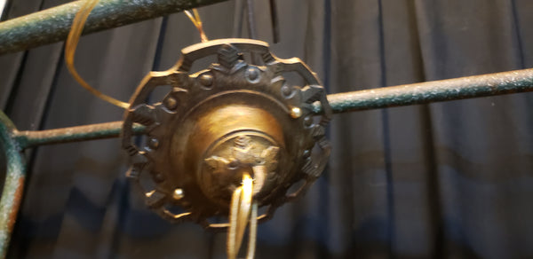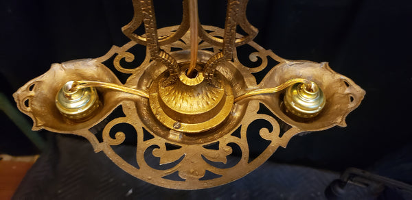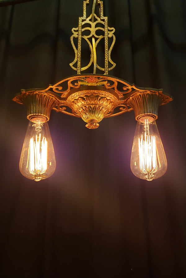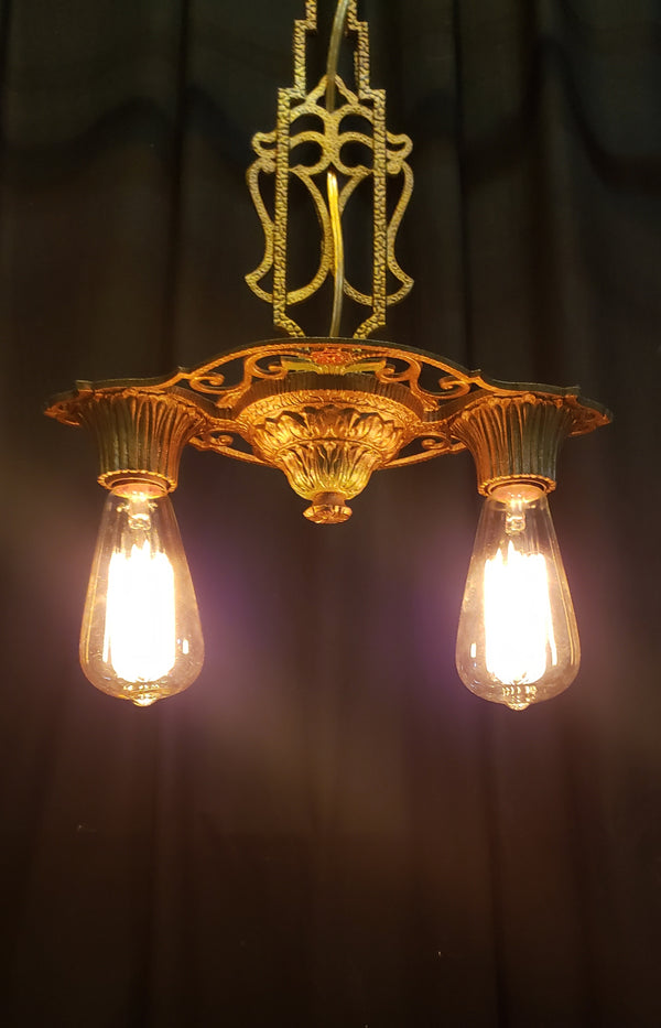 Restored Cast Iron Art Deco 2 Light Chandelier with Chain & Matching Ceiling Cap #GA9181