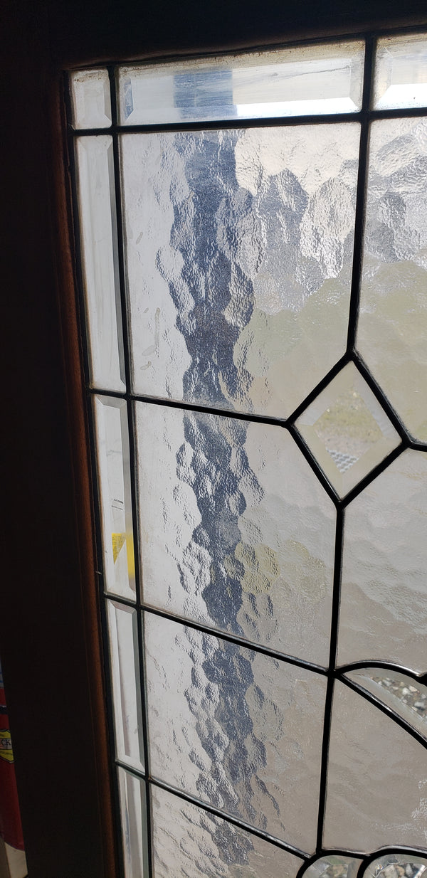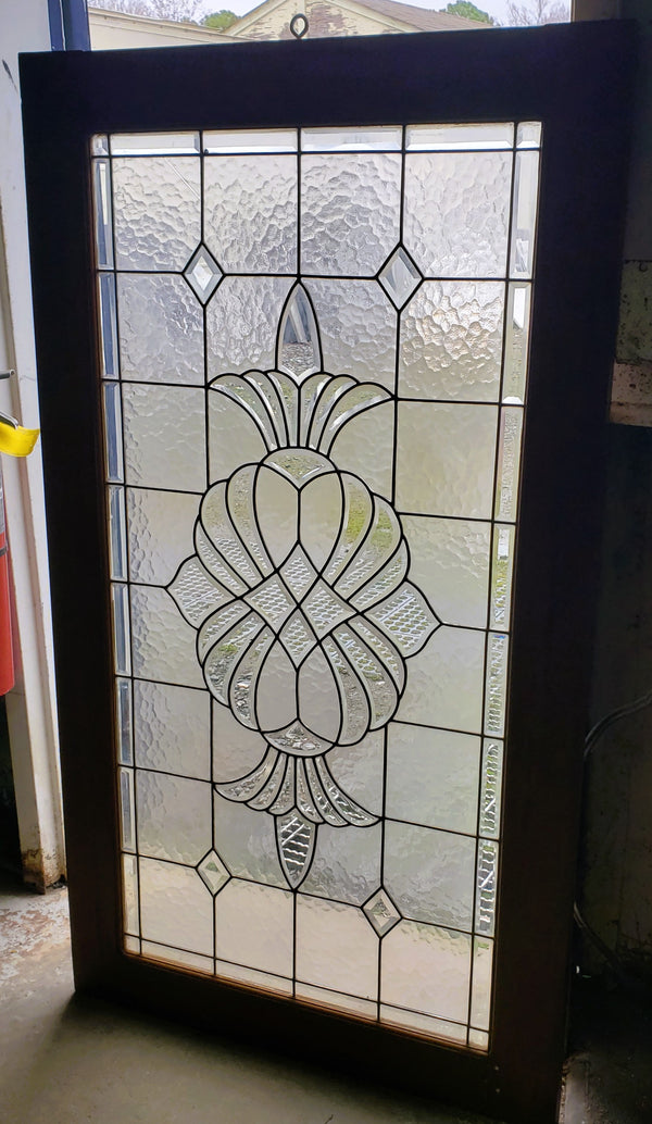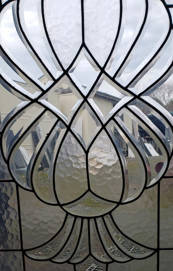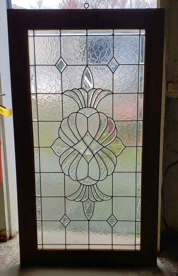 Art Nouveau Beveled Textured Leaded Glass Window in Wood Frame 30 3/4" x 50 1/4" GA9755