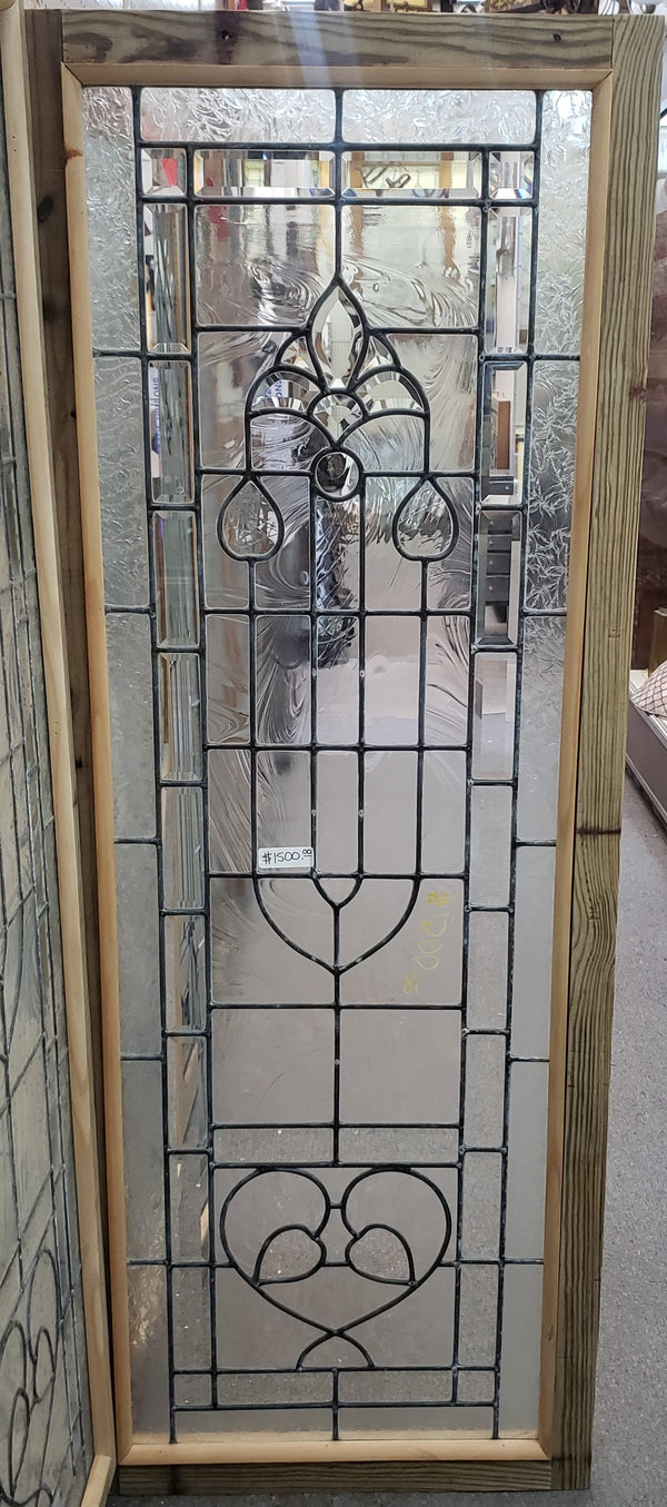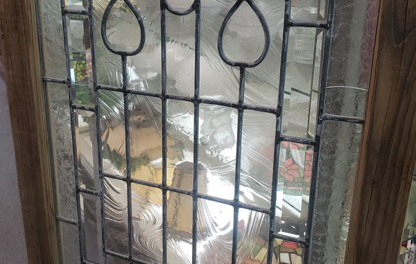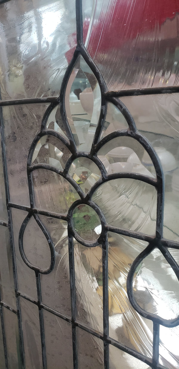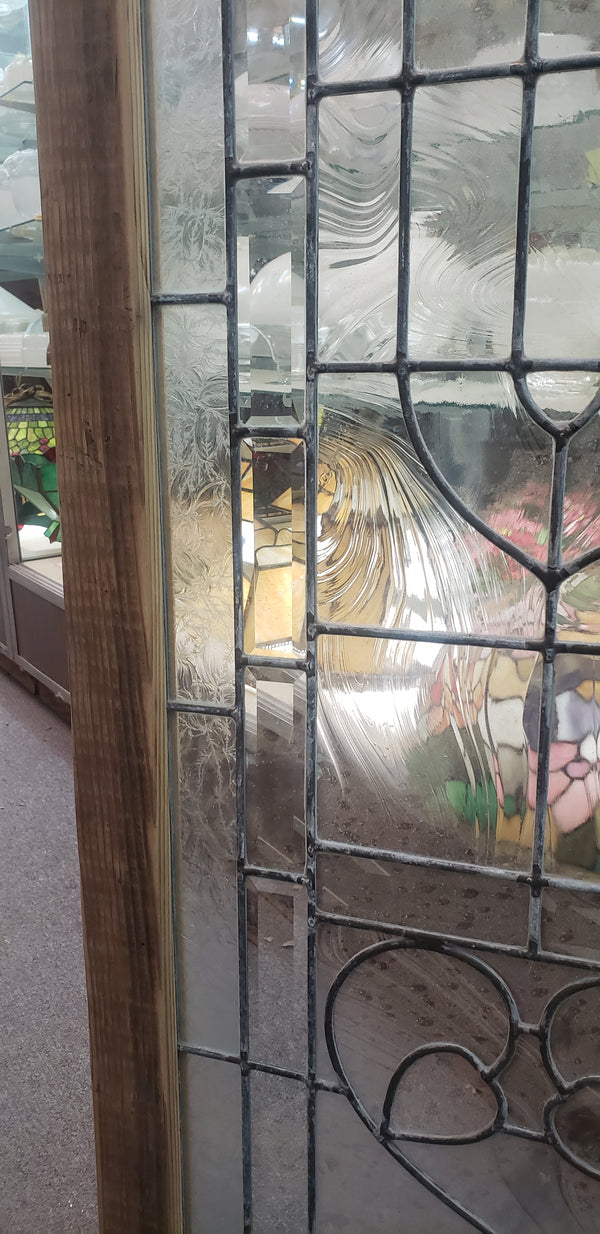 Art Nouveau Textured Beveled Leaded Glass Window in Wood Frame #GA9128