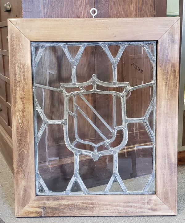 Leaded Glass Window with Center Heraldic Crest Design in Stained Wood Frame #GA9124
