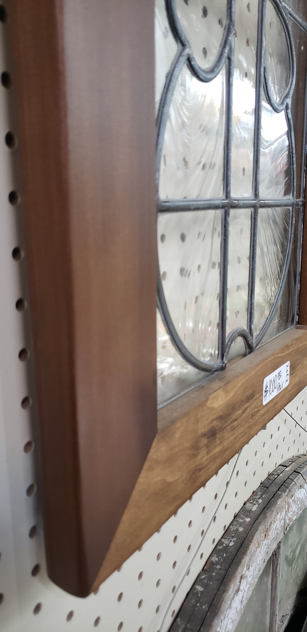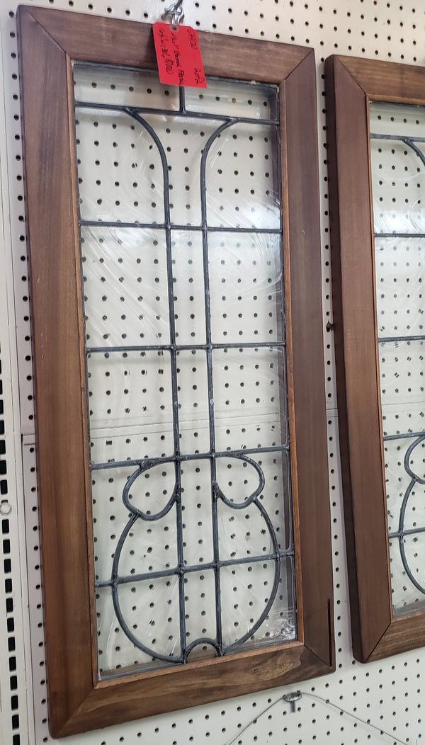 Pair of Textured Leaded Glass Windows in Wood Frames #GA9130