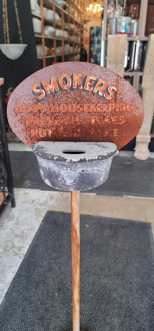 Vintage Free Standing "Smokers" Sign with Pole & Covered Ashtray 48" GS00829
