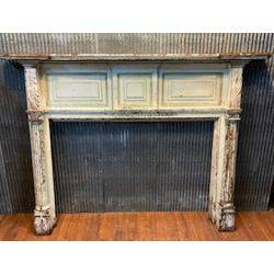 This mantel has lots of character and details. Large in size measuring 63" tall 85" wide and has a firebox size of 58" wide by 41 1/2" tall. The fluted columns on the sides are deeply grooved. The top double panels are raised and the top shelf has a great curve. Original patina makes this mantle clearly stand out.