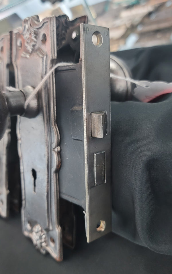 Pair of Restored Art Nouveau Mortice Lock Sets w/ Backplates & Knobs GS00483