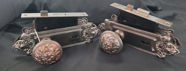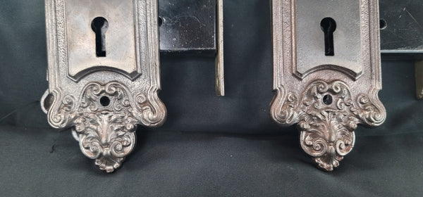 Pair of Restored Victorian Mortice Lock Sets w/ Backplates & Knobs GS00482