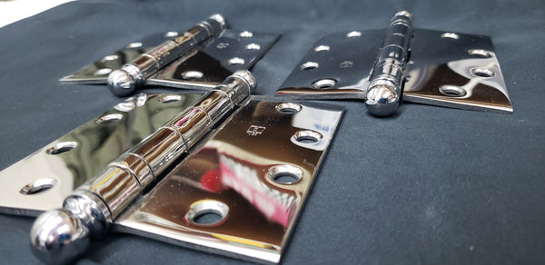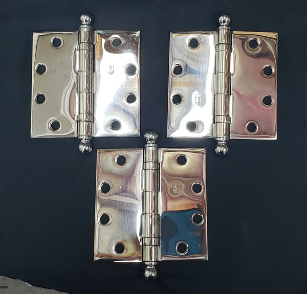 3 Polished Chrome Hager Hinges w/ Ball Finials & Screws 4 1/2" x 4 1/2" GS00324