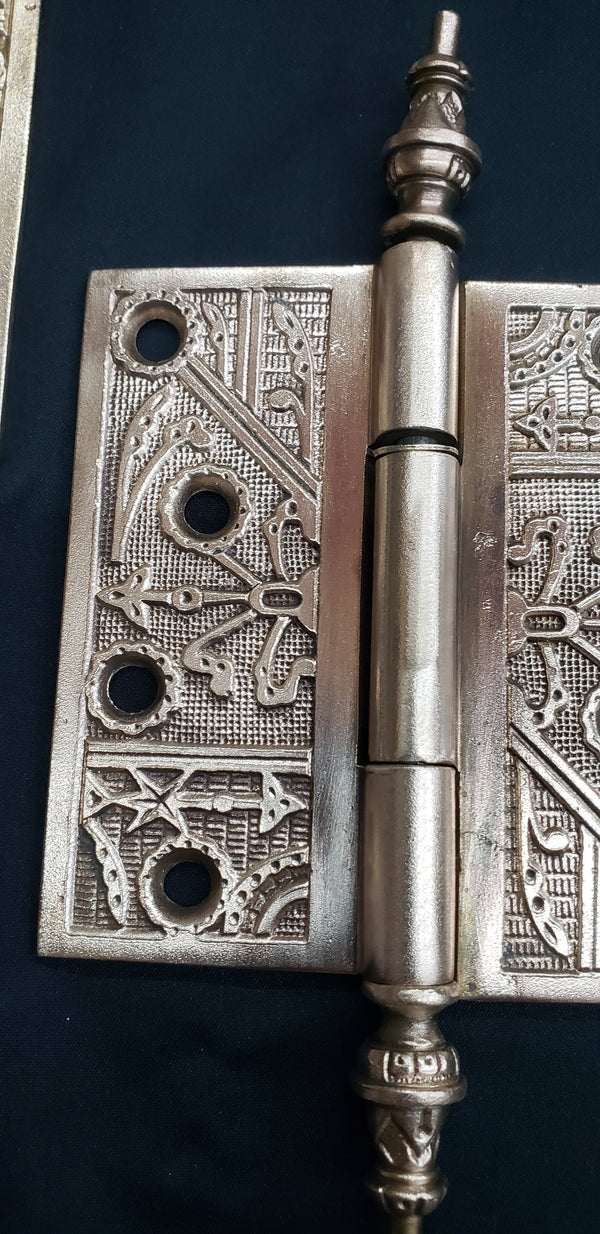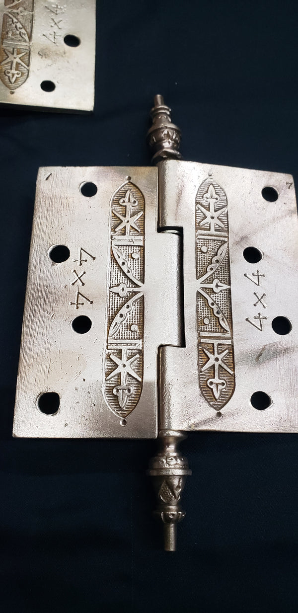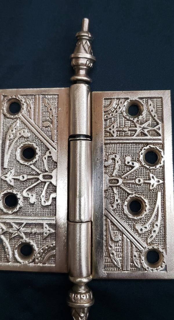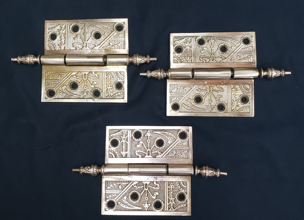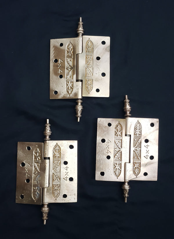3 Solid Brass Victorian Eastlake Hinges w/ Arrow Finials 4" x 4" GS00336