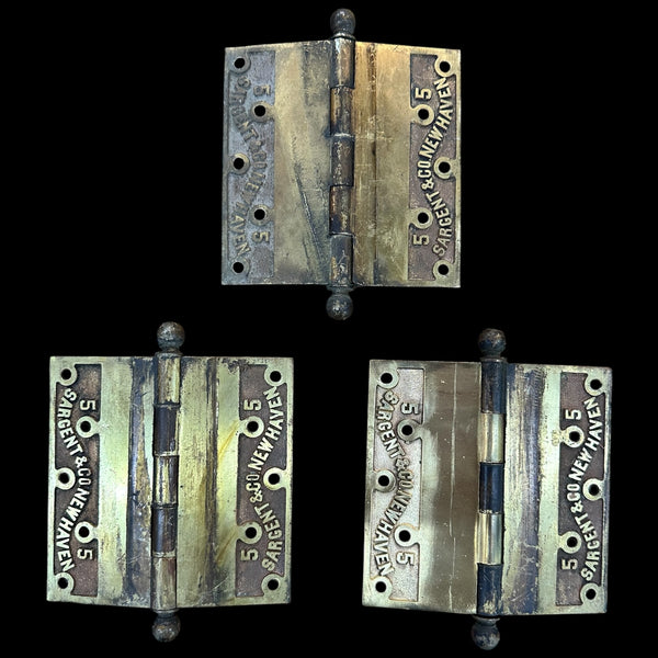 Set of 3 Brass Sargent & Co. Offset Door Hinges GA20220