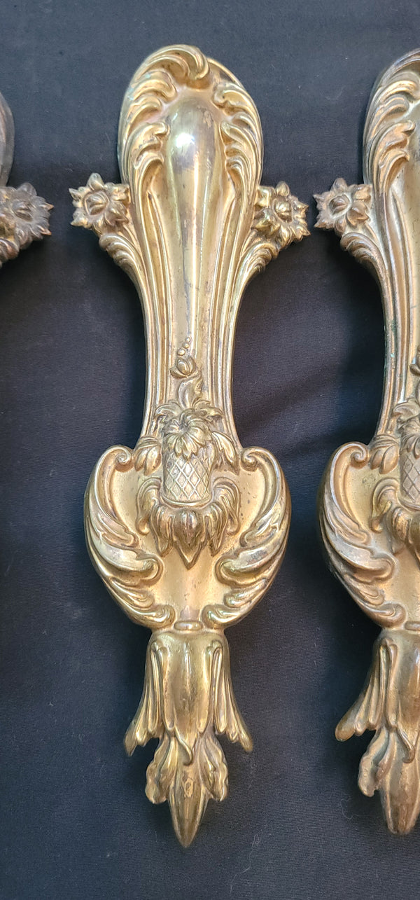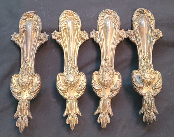 4 Tall Brass Art Nouveau Curtain Drapery Tie Backs 10 1/2" x 3 1/2" GS00644