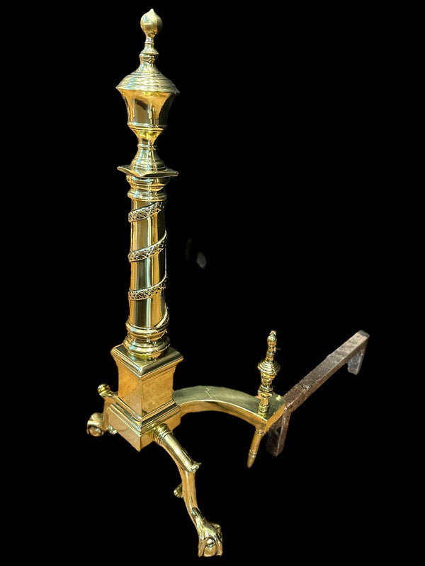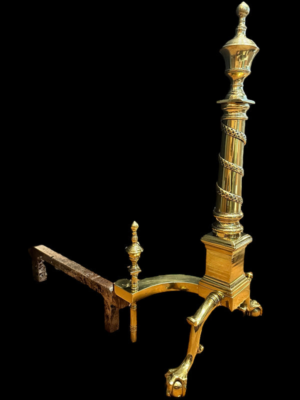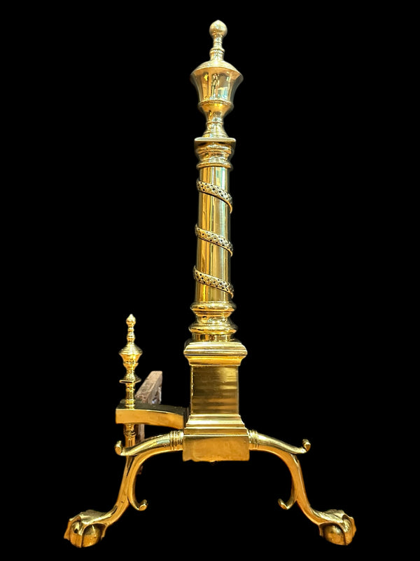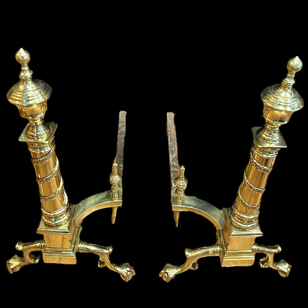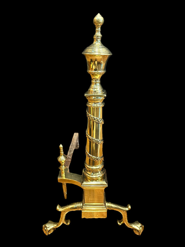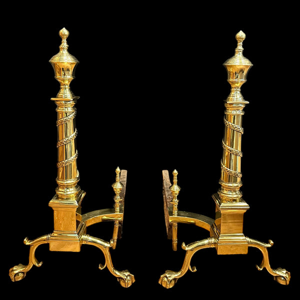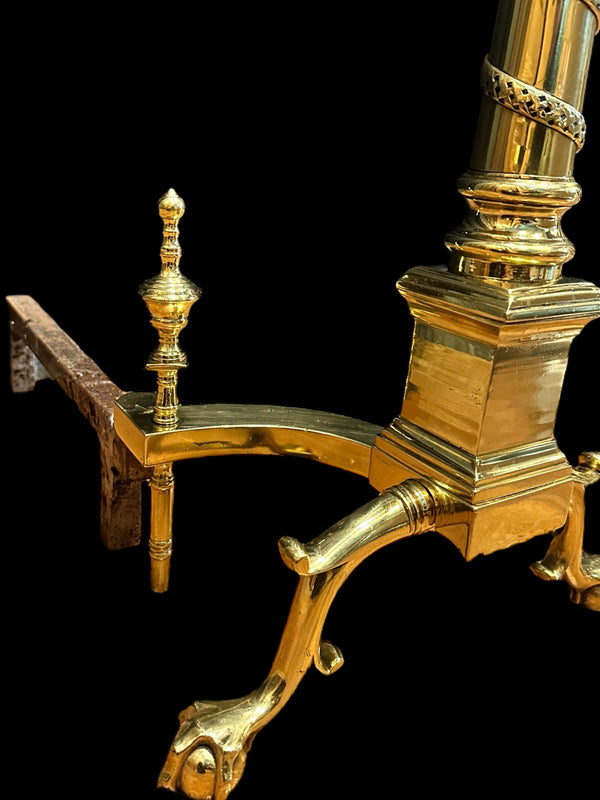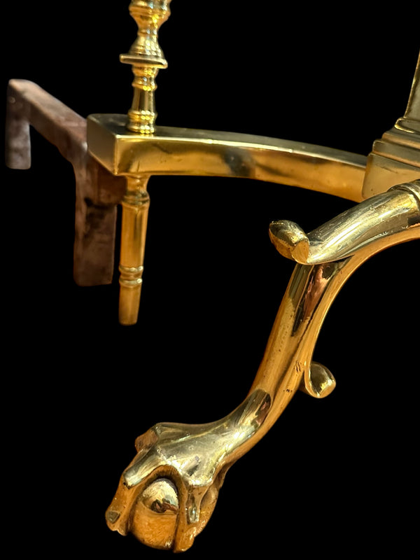 Pair of Brass Andirons w/ Chippendale Claw Feet and Acorn Finials GA20122