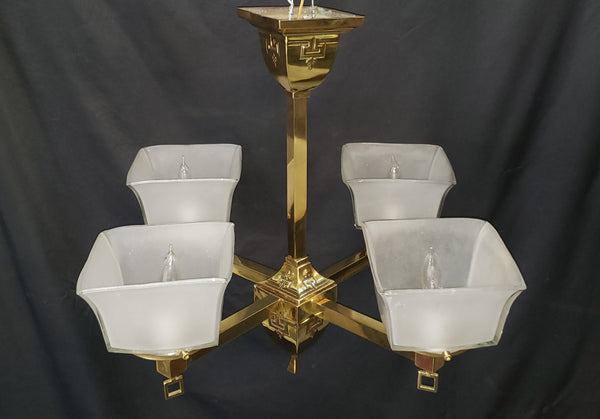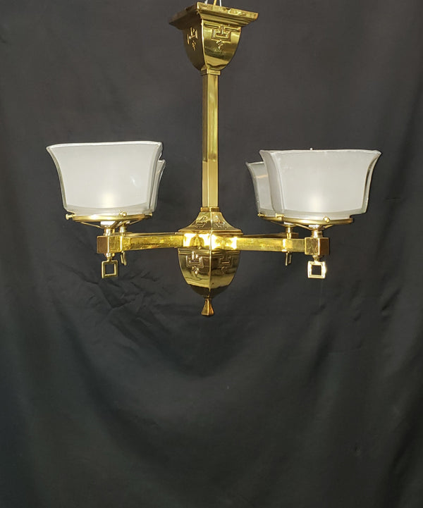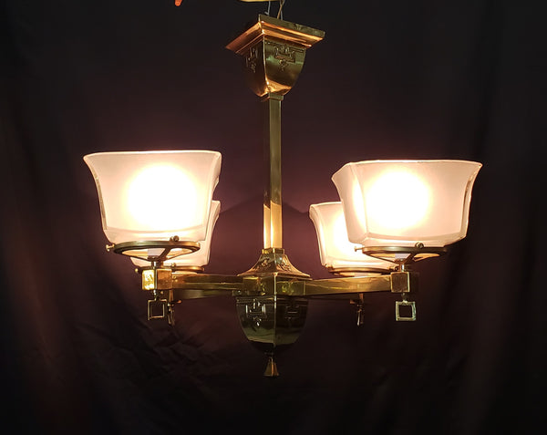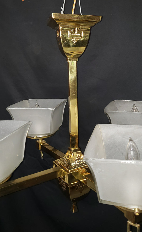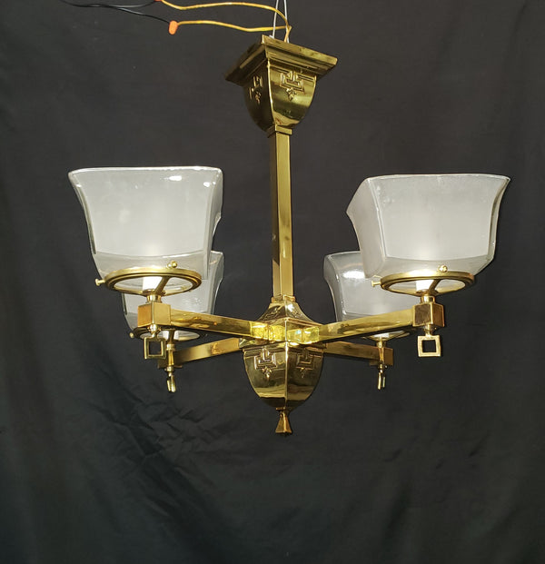4 Light Flush Mount Brass Chandelier w/ Square Opaque Shades 25" x 19" GS00465