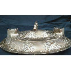 This oval fixture is made of cast iron and has a textured surface and center hanging tassel. Newly re-wired with two new sockets. No chips, cracks, or breaks. This fixture measures: 11" inches wide by 7 1/2" inches tall and has a 2 1/2" projection.