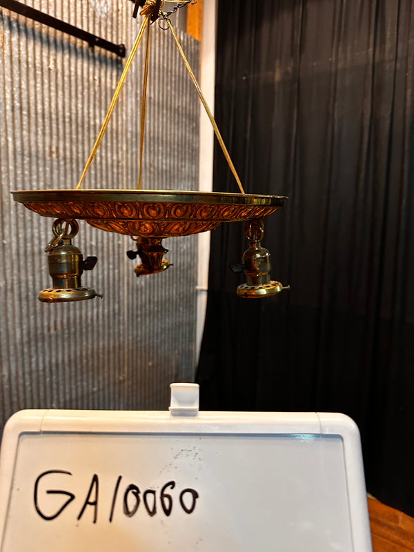 ART DECO BRASS TRIPLE-LIGHT PAN-STYLE FLUSH MOUNT FIXTURE GA10060