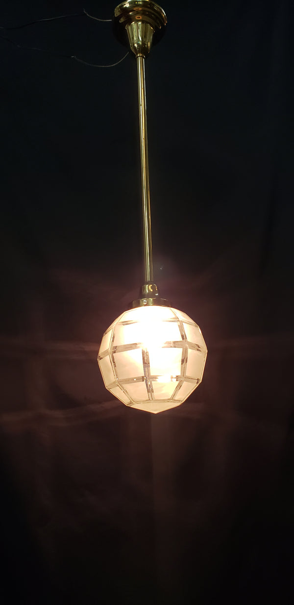 Flush Mount Pendant Fixture w/Opaque to Clear Square Pattern Globe GS00458