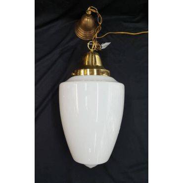 Large White Glass Schoolhouse Ceiling Fixture with Brass Trim #GA4255