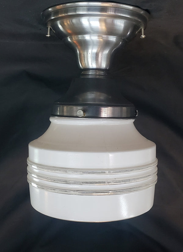 Restored MCM Flush Mount Ceiling Fixture w/ Bullseye White to Clear Globe GS00358