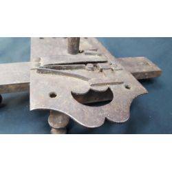 This unique late 1700's-early 1800's iron lock has a slide bolt which is released from the bottom lever.