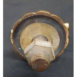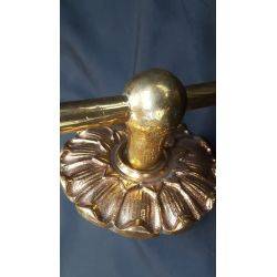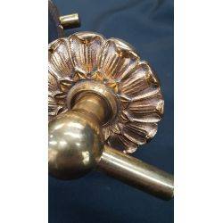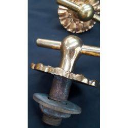 This is a set of stunning heavy duty door pulls. Made of brass and bronze, it's unique Art Nouveau design will make a statement for any room. Each pull measures 3 1/2" in diameter. The connected front brass bar pull measures 4 1/2" by 1/2". Once installed, it has a 2 1/2" projection. The back of the pull is supported by a 1" by 2 1/4" round threaded bolt with nut and washer.