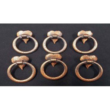 Set of 6 Brass Round Drawer Pull Handles With Heart Shaped Centers #GA23