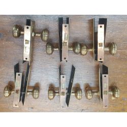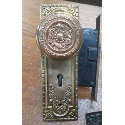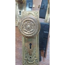 Set of 6 Ornate Victorian Brass Mortice Lock Sets with Knobs & Back Plates #GA4396