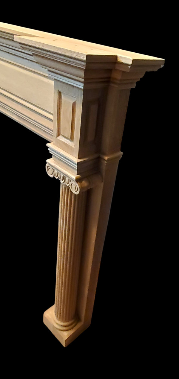 This is a new old stock mantel manufactured by The Pearl Mantel Company. It is beautifully made with unique details throughout. This is a discontinued style.