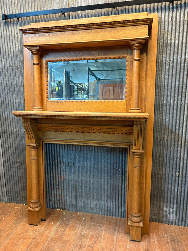 Solid Carved Oak Mantel w/ Beveled Mirror GS6043