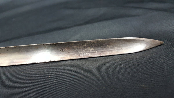 Blade is in good condition with no breaks or cracks. There is some pitting on the edges and some discoloration shown which is normal for age. Markings also noted at the base of the blade.