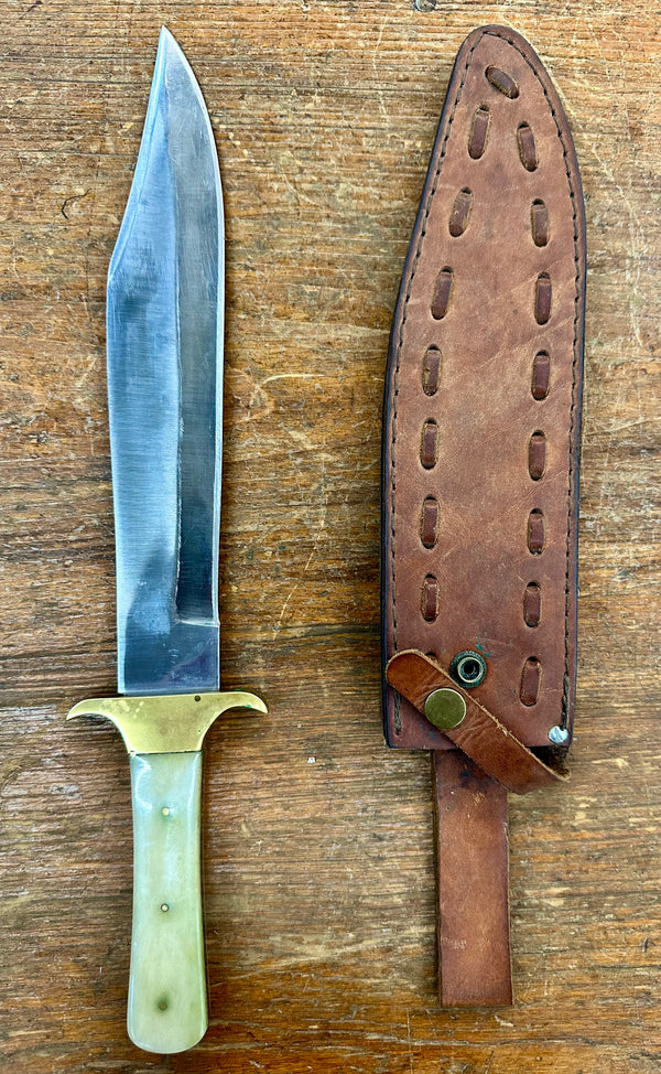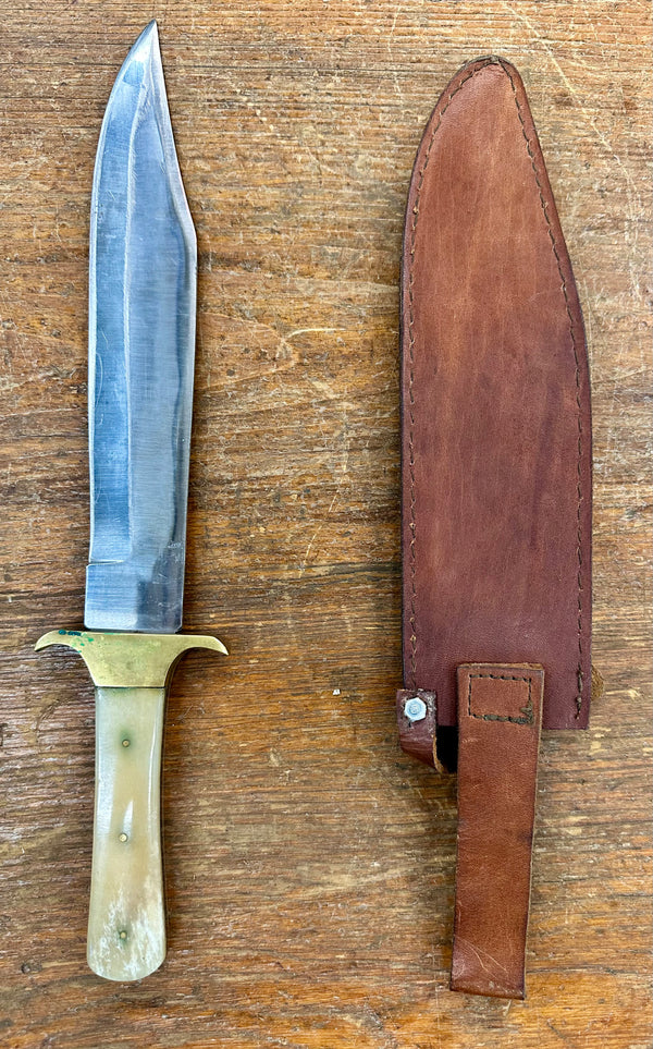 Stainless Steel Scabbard Hunting Knife w/ Brown Leather Sheath GA20161