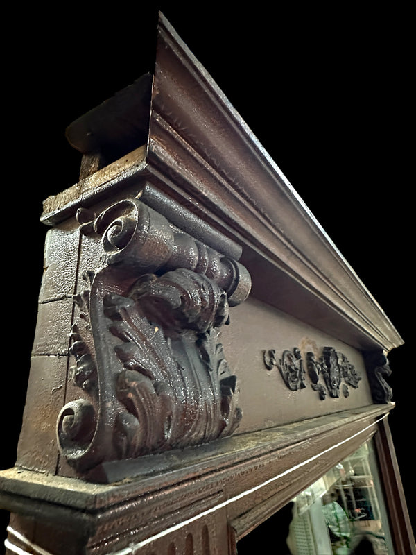 This Victorian Entry Mirror with Shelf is a unique piece of antique furniture that exudes elegance and charm. The addition of a shelf below the mirror provides functionality and convenience, making it a practical and stylish choice for entryways or hallways.