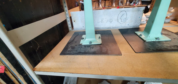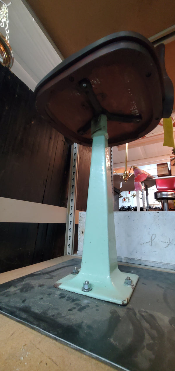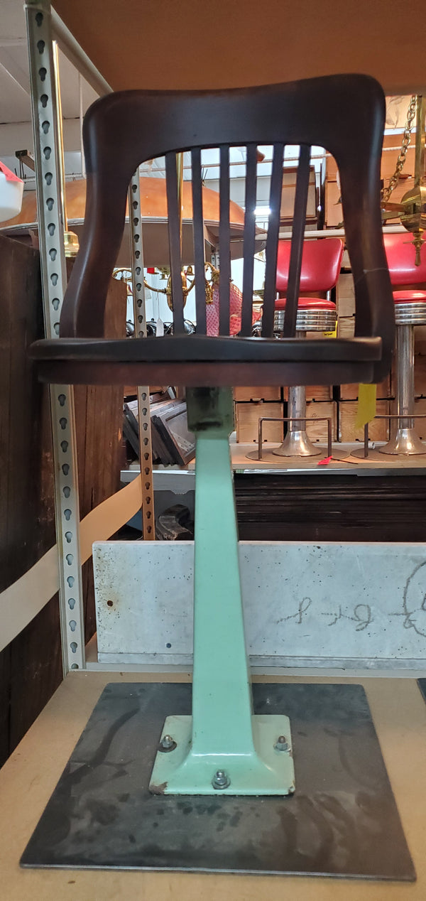Cast green base with a restored walnut seat. Custom steel plate made for stand-alone use, or remove and bolt directly to the surface.
