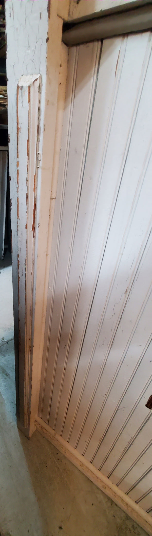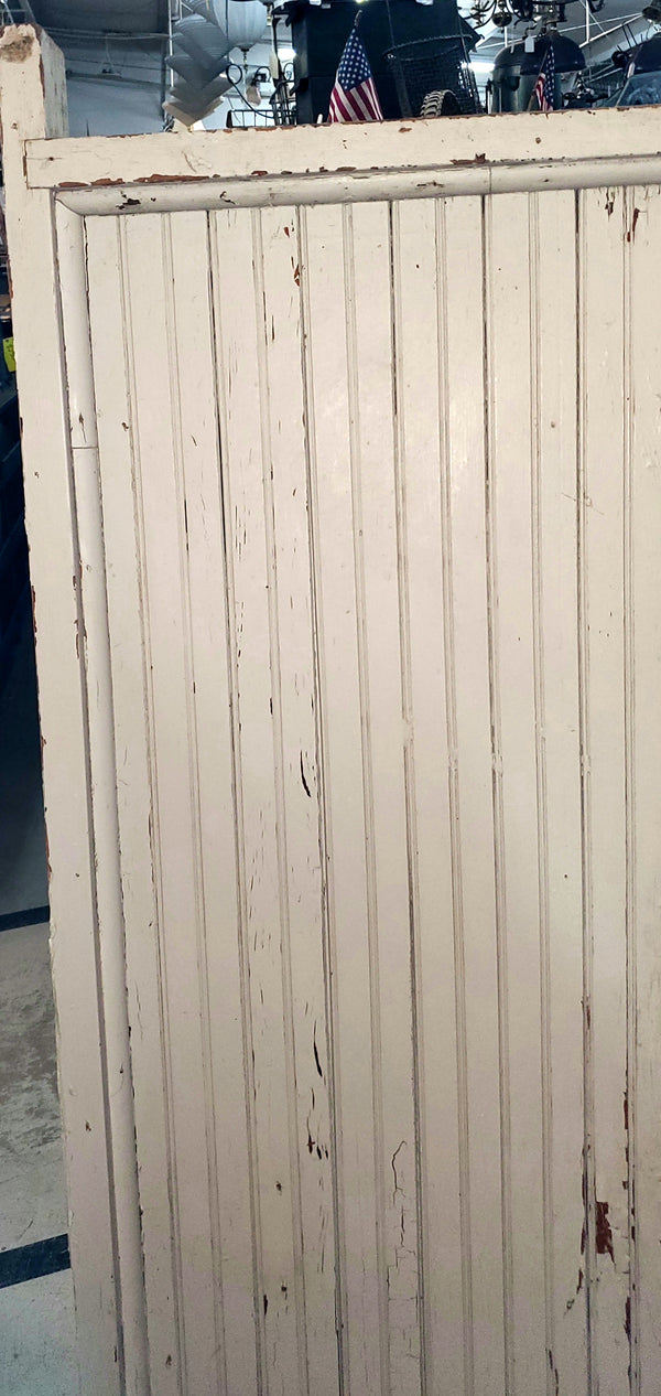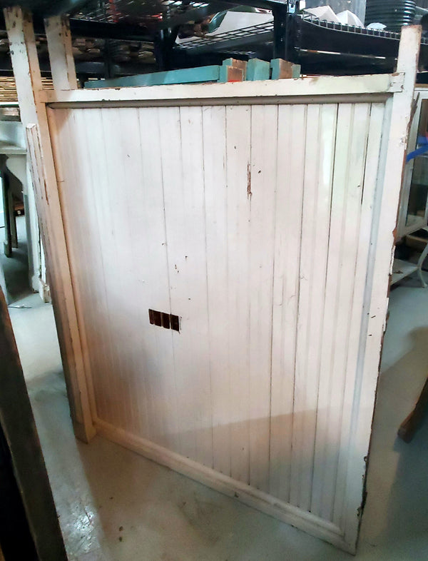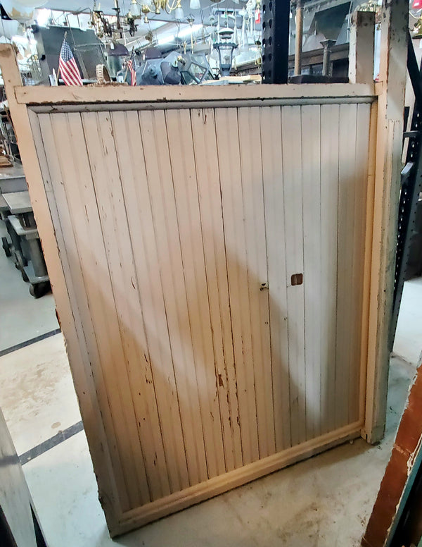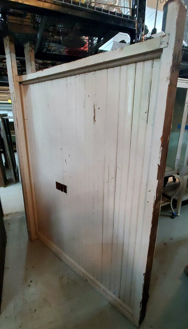 This is a salvaged double sided, beadboard divider panel. Double footed on one end.The beadboard is shown on both sides of the panel. As is, as shown.