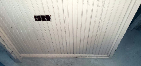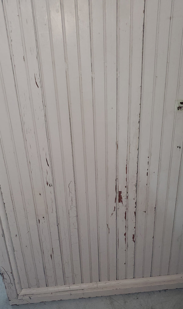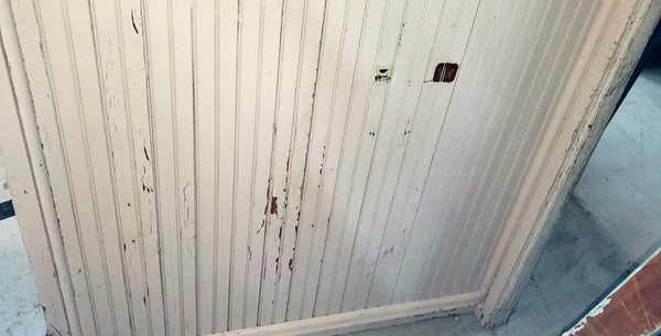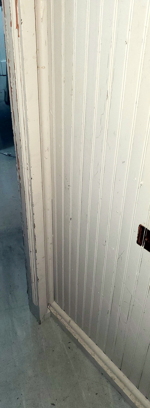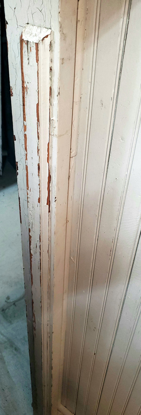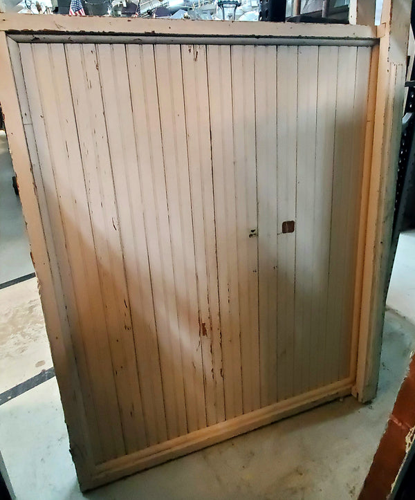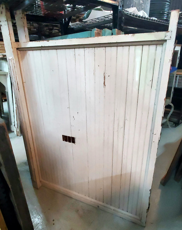 This is a salvaged double sided, beadboard divider panel. Double footed on one end.The beadboard is shown on both sides of the panel. As is, as shown.
