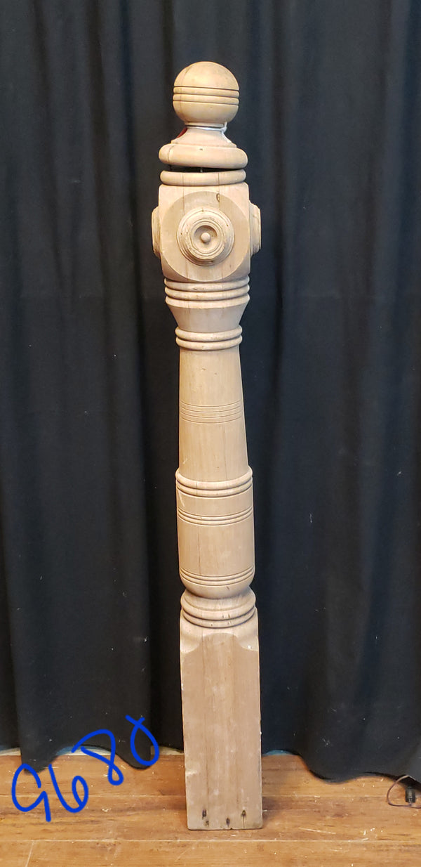 Newly Stripped Ornate Solid Oak Newel Post 53" x 5 1/2" GA9680