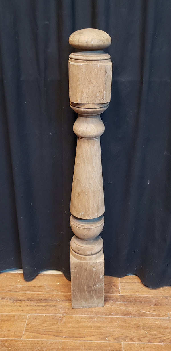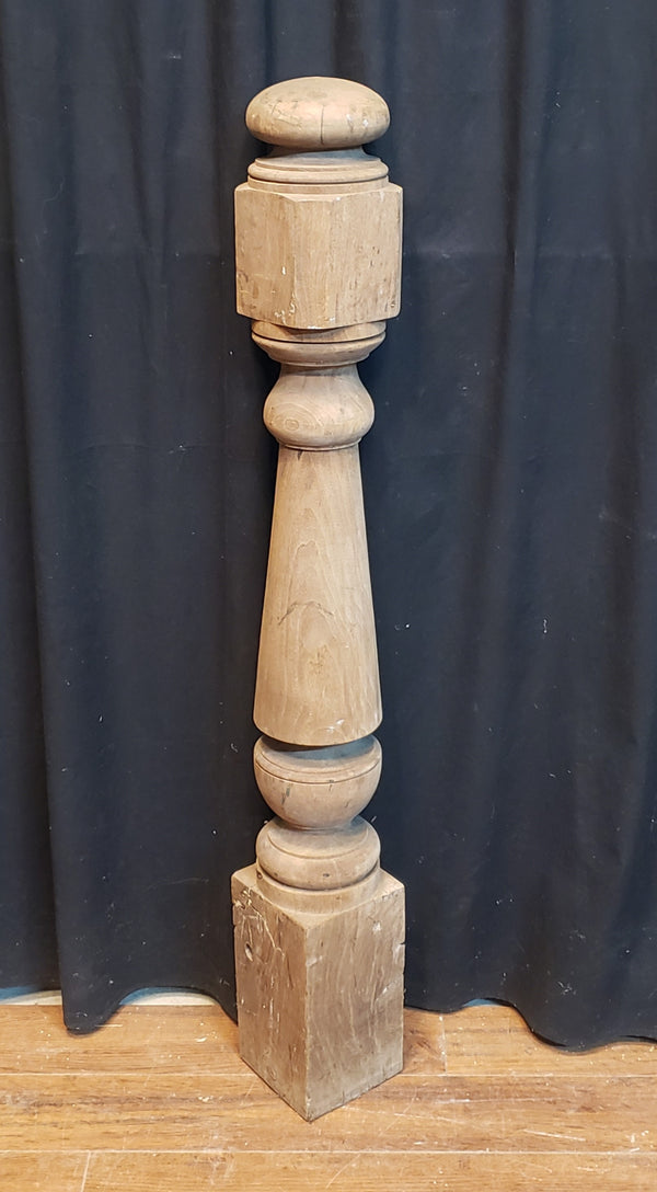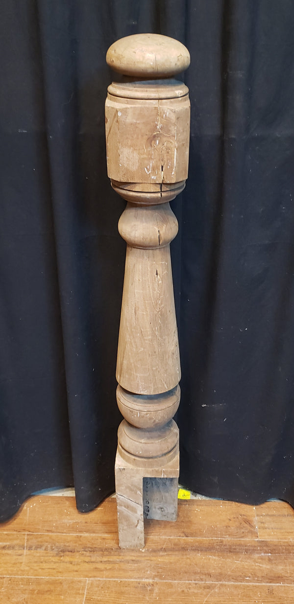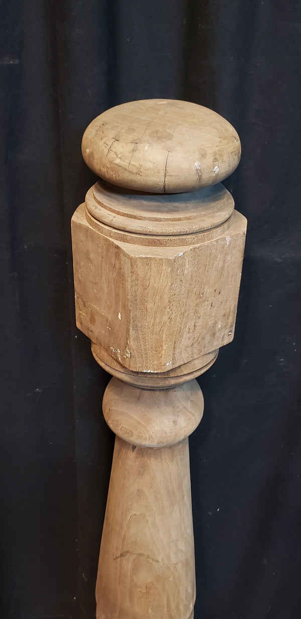 We recently stripped many layers of paint from this newel post. The top is round and tapered with the lower section having multiple turns. Made from Walnut.