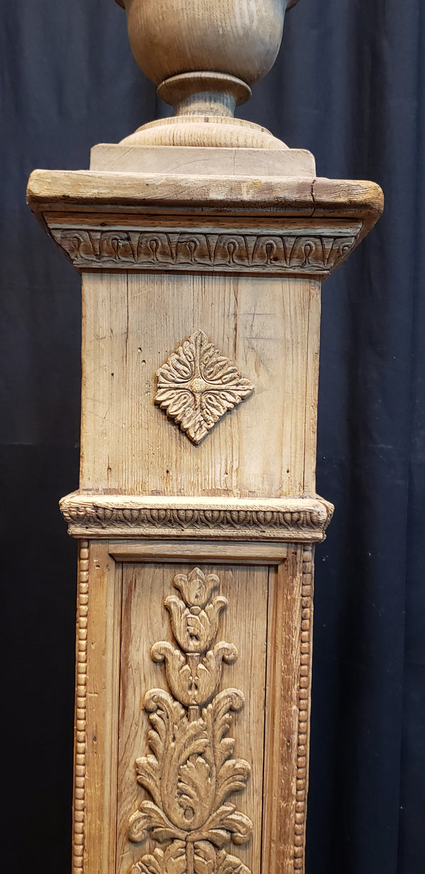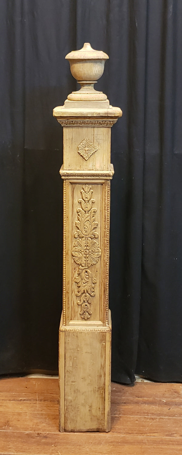 We recently restored this newel post by stripping and detailing each ornate section. It has it's original top finial and some amazing carved designs on the sides.