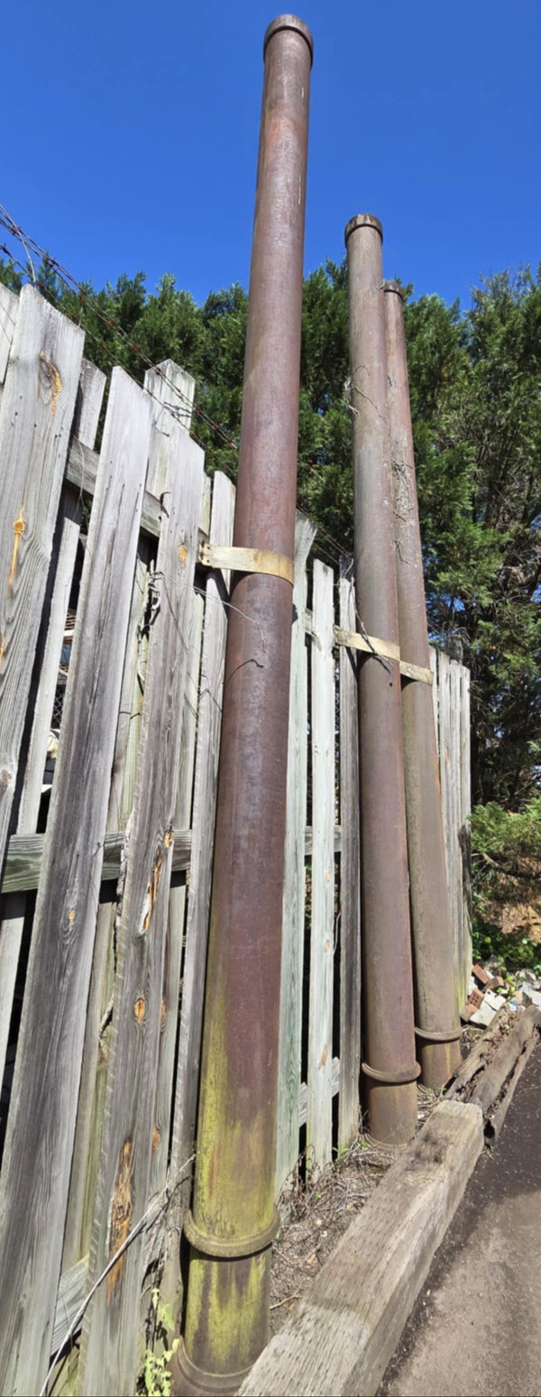 These are19-foot iron posts with a total of 3 available. These posts are likely designed for use in architectural and garden settings, possibly as decorative or structural elements.