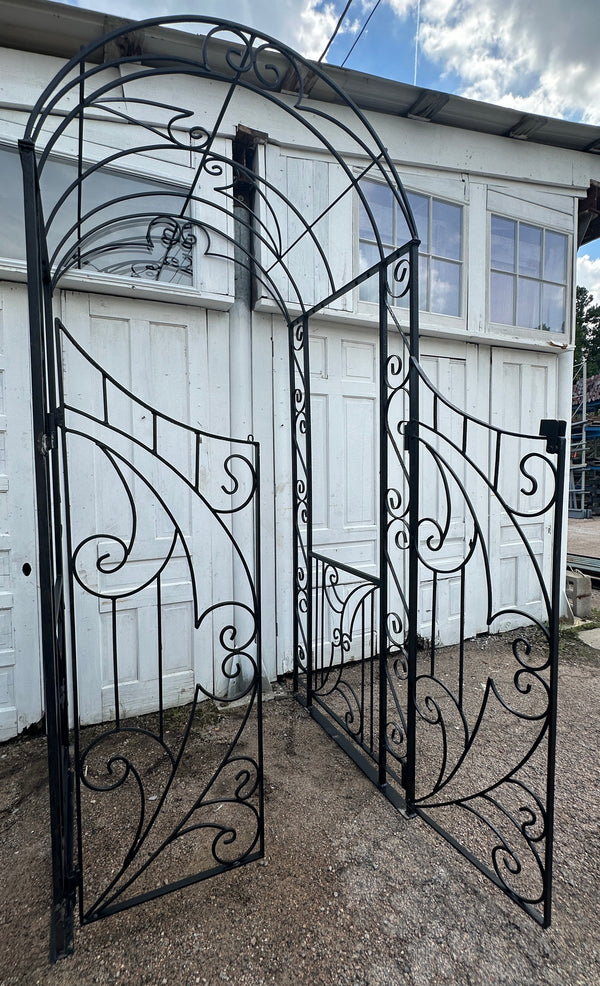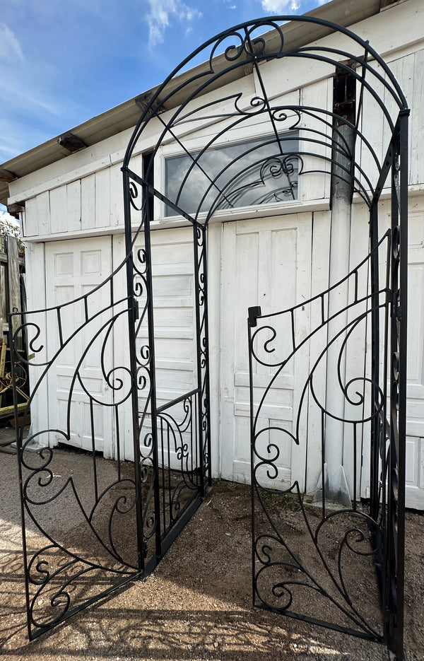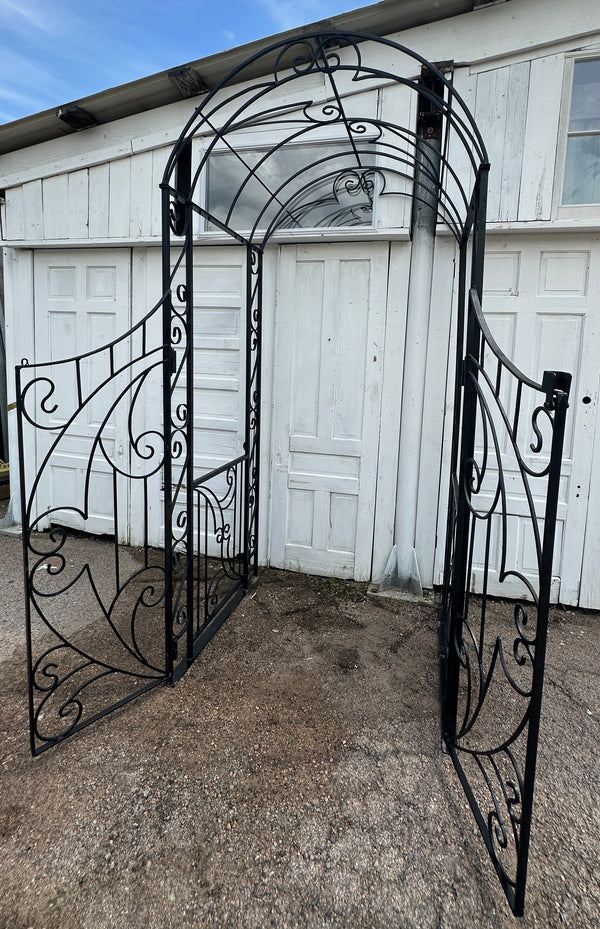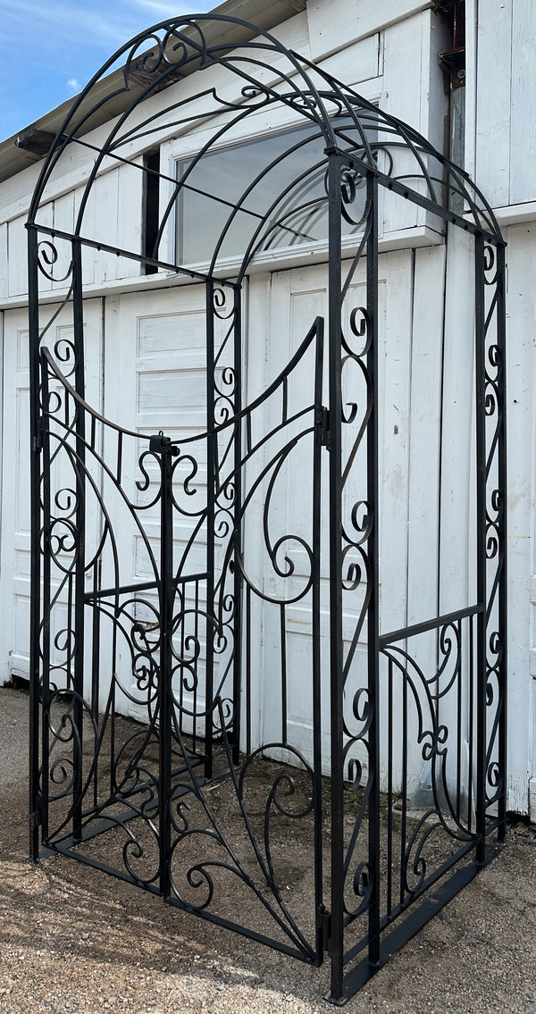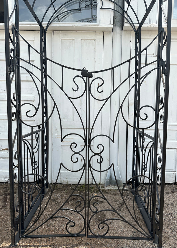 Custom-Built Wrought Iron Arbor w/ Crescent Top Entryway Gates GA20319