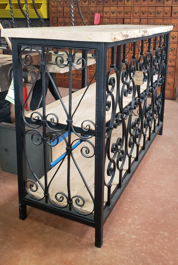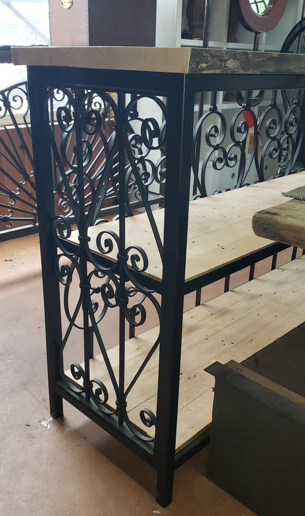 Custom Made Wrought Iron & Wood Console Table with 3 Shelves GS00408