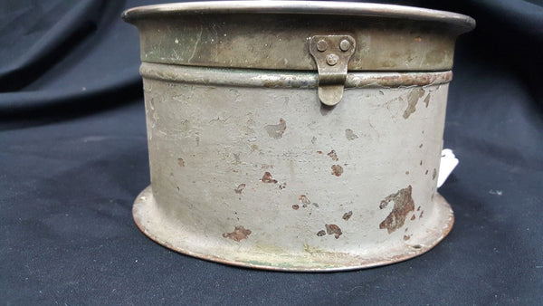 The front glass cover opens from a side hinge. The cover and glass are intact with no breaks or chips. The center of the bass was previously painted and shows existing paint. There is a mesh grid area for ventilation on one side. On the back of the clock (bottom) there is an inscribed date of 2-15-45 along with various numbers and letters hand inscribed. Made in the USA.