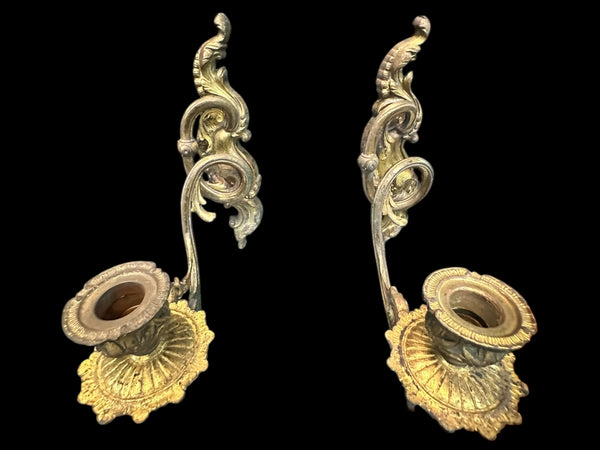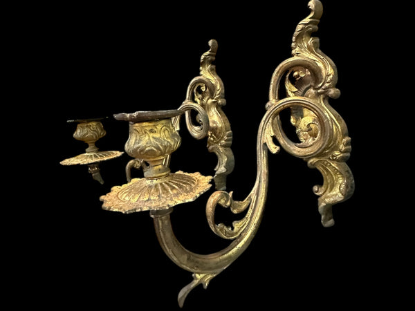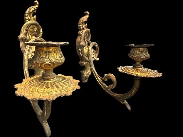 The Brass Wall Sconce Pair is a set of two decorative candle holders designed for mounting on the wall. Made of brass, these sconces are stylish and elegant, adding a touch of sophistication to any room.